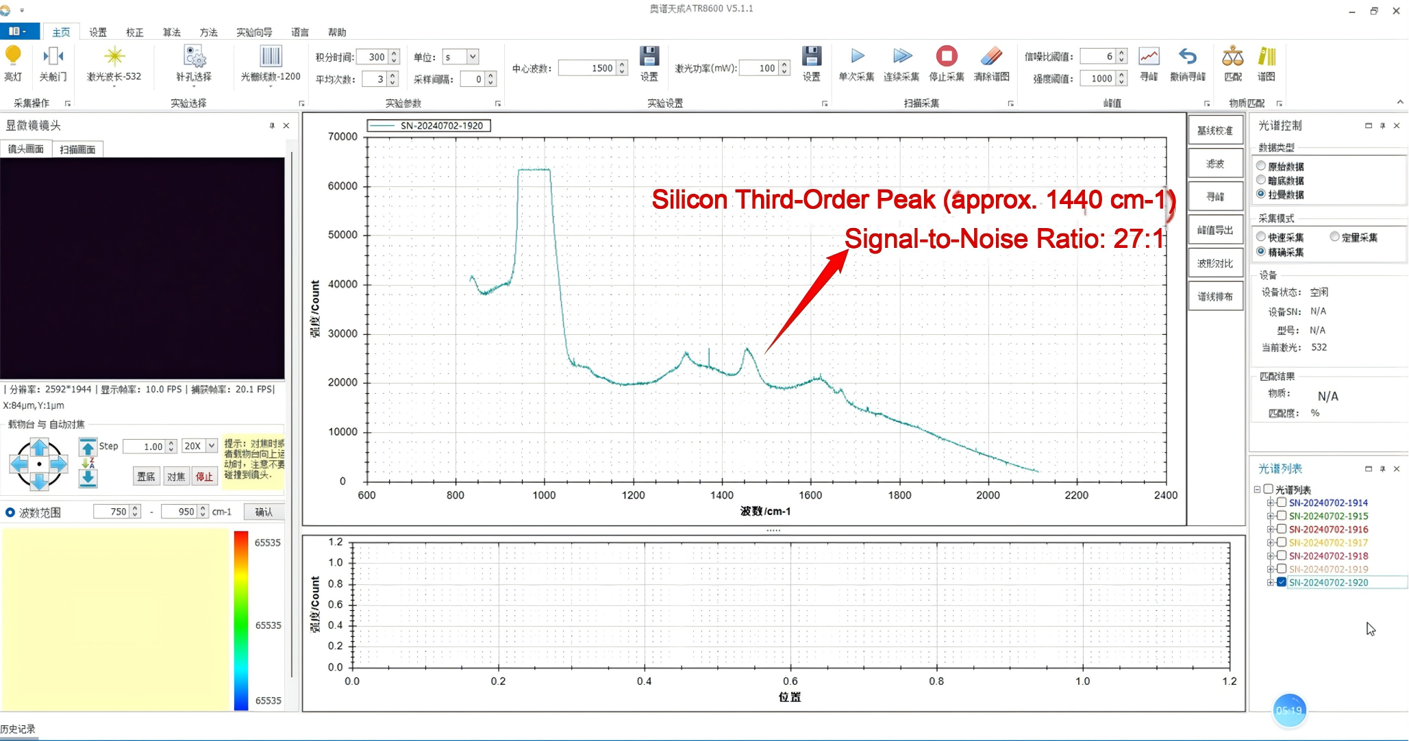 The all-free-space optical design makes the instrument more compact, reduces light loss, and improves system stability and signal transmission efficiency. Ultra-high sensitivity, high signal-to-noiseratio for the third-order peak of single crystal silicon.