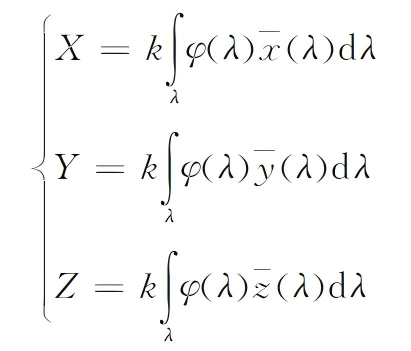 l X, Y, Z Tristimulus Values: Correspond to the degree of stimulation of the red, green, and blue components, respectively. They are calculated by integrating the spectral reflectance ρ(λ) with the spectral power distribution S(λ) of the illuminant.
